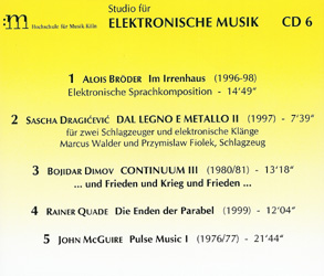 Studio für Elektronische Musik" of the Hochschule für Musik Köln CD 6